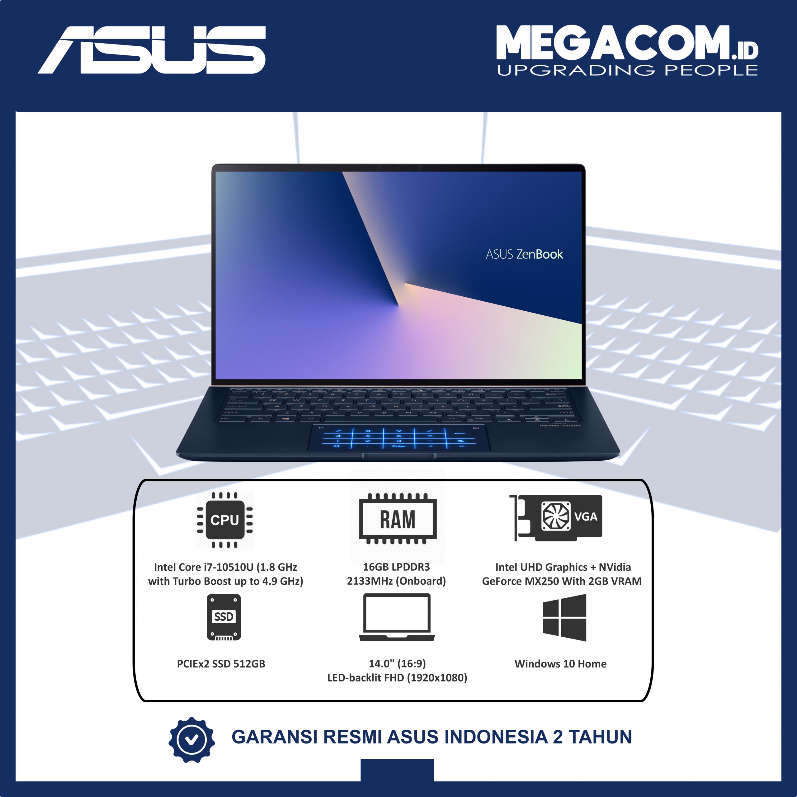 ASUS Zenbook UX433FLC-A701T Blue [i7-10510U|RAM 16GB|PCIe 512GB|Win10]